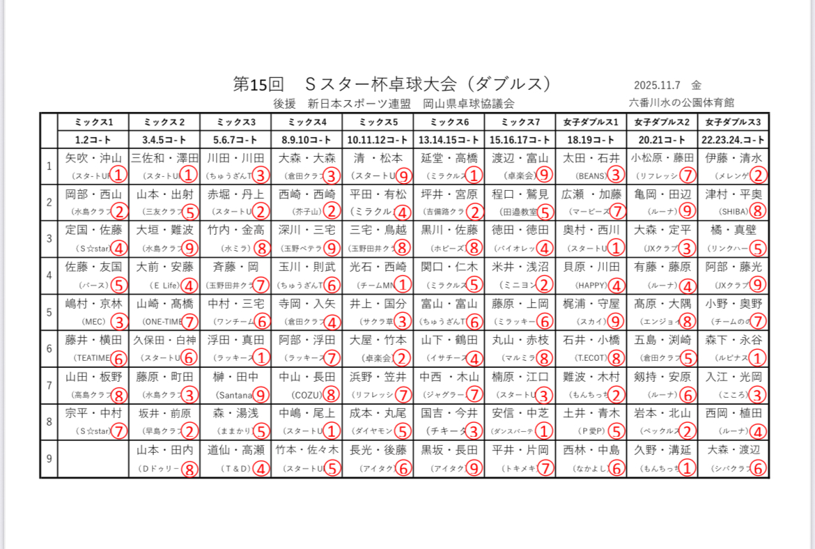 こちら詳細⇨第16回Sスター杯卓球大会1.16